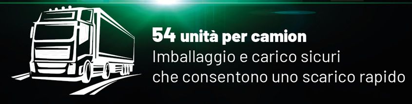 Dimensioni molto compatte per una facile maneggevolezza e Trasportabilità, fino a 54 unità per camion